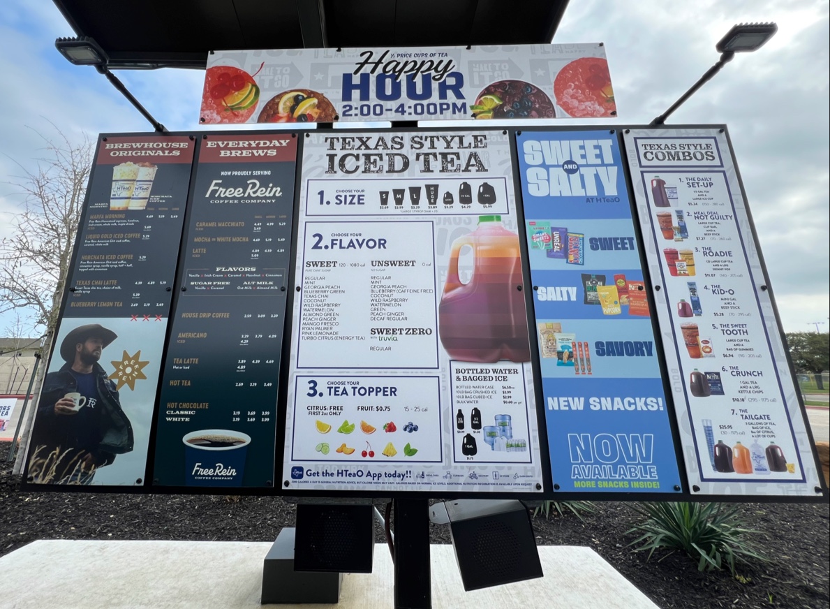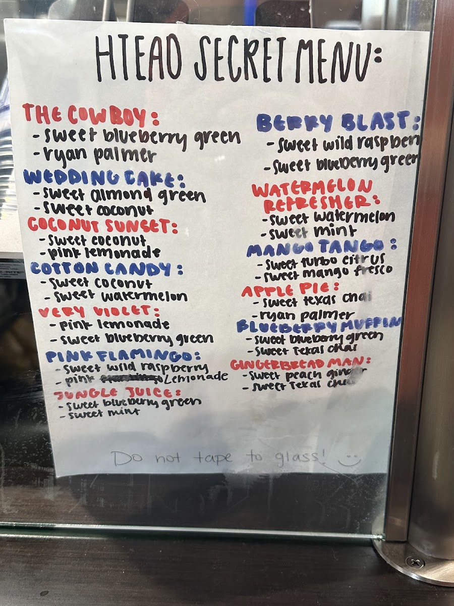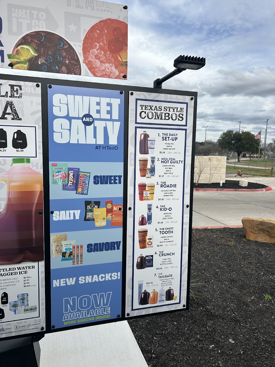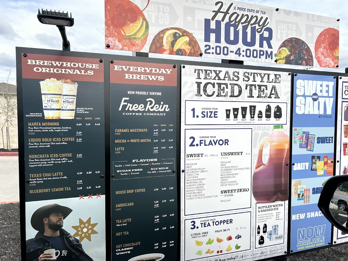 From a reviewer’s perspective, the menu at HTeaO - College Station offers a refreshingly diverse lineup centered on creative tea blends and specialty drinks, complemented by light snacks and unique extras. Standout options include the flavorful gallon selections like Sweet Strawberry Passion Gallons and Sweet Blueberry Green Gallons, alongside classics such as Lemonade Gallons, though prices are not clearly listed. The sweet iced tea range, featuring favorites like Sweet Peach Ginger and Sweet Wild Raspberry, showcases the brand’s strength in bold, fruity profiles. For something more indulgent, the iced coffee section highlights drinks like Liquid Gold and the popular Pistachio Latte, while hot offerings such as Mocha (Hot Or Iced) and Texas Chai Tea Latte (Hot Or Iced) provide cozy alternatives. The “Thirst Quenchers,” including Dirty Cherry Poppi and The Razzler Refresher, add a playful twist, and the “Secret Menu” with items like The Cowboy and Cotton Candy keeps things intriguing for regulars. Although specific pricing details are limited, the menu’s breadth-from HTeaO Energy Shots to snacks like Tony’s Chocolonely Bars-makes it a versatile spot for both quick refreshment and experimentation.